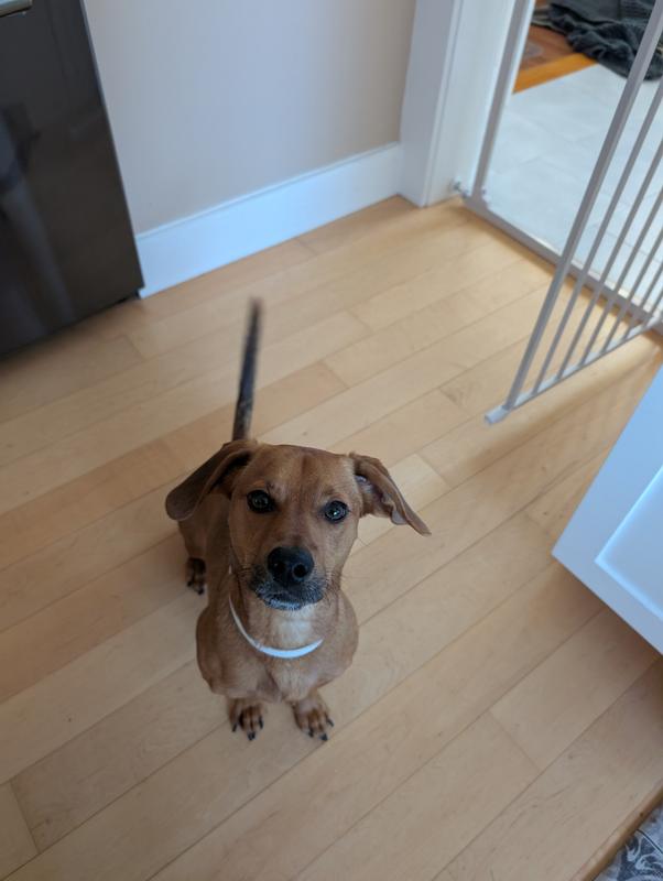 Toby is a Doxipoo that's a year old and is very nervous when getting ready to be groomed. This collar seemed to relax him and seemed to help, until the toenails