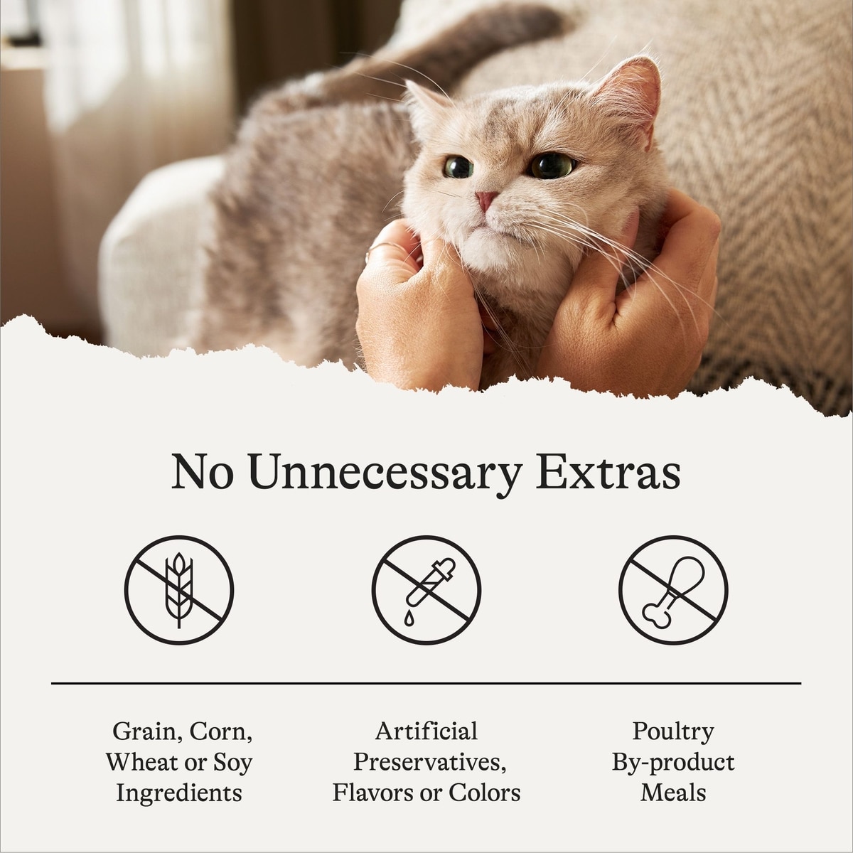 When it comes to your cat’s food, there’s no need to overcomplicate what nature made simple—start with hearty protein and add in wholesome ingredients to provide taste and nutrition.