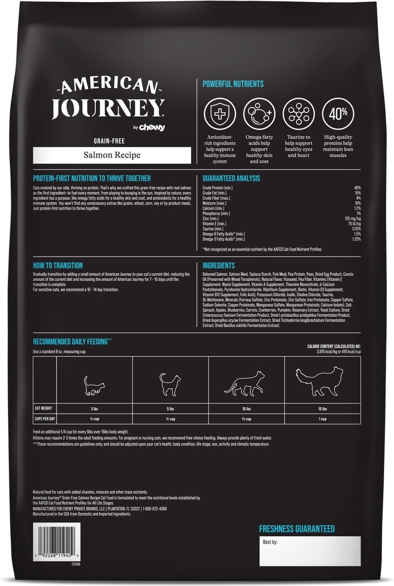 - American Journey Turkey & Chicken Recipe Grain-Free Dry Cat Food, 12-lb bagBy$37.99 Chewy Price$36.09 Autoship Price