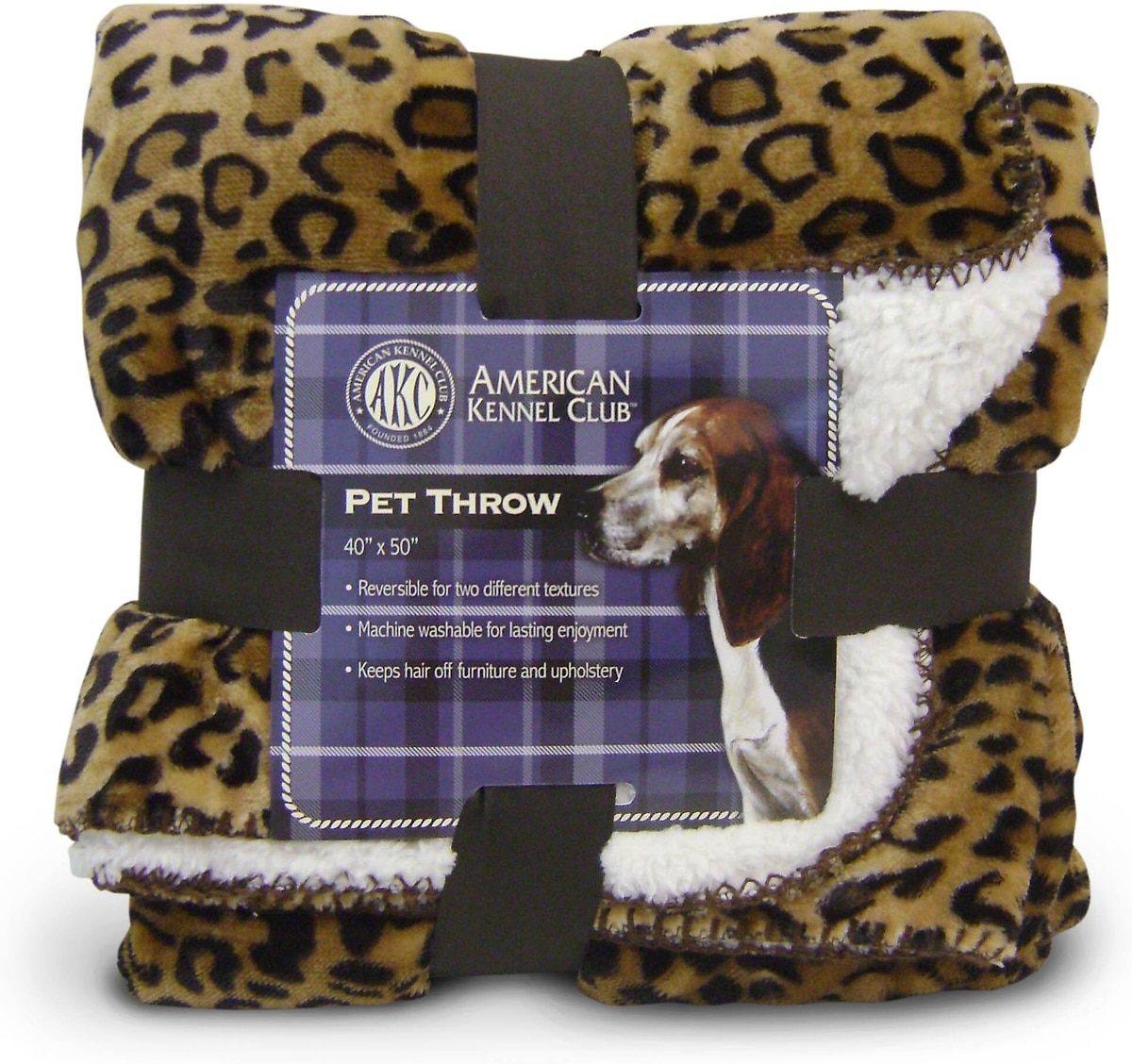 American Kennel Club AKC Animal Print Fleece Dog & Cat Blanket, Leopard