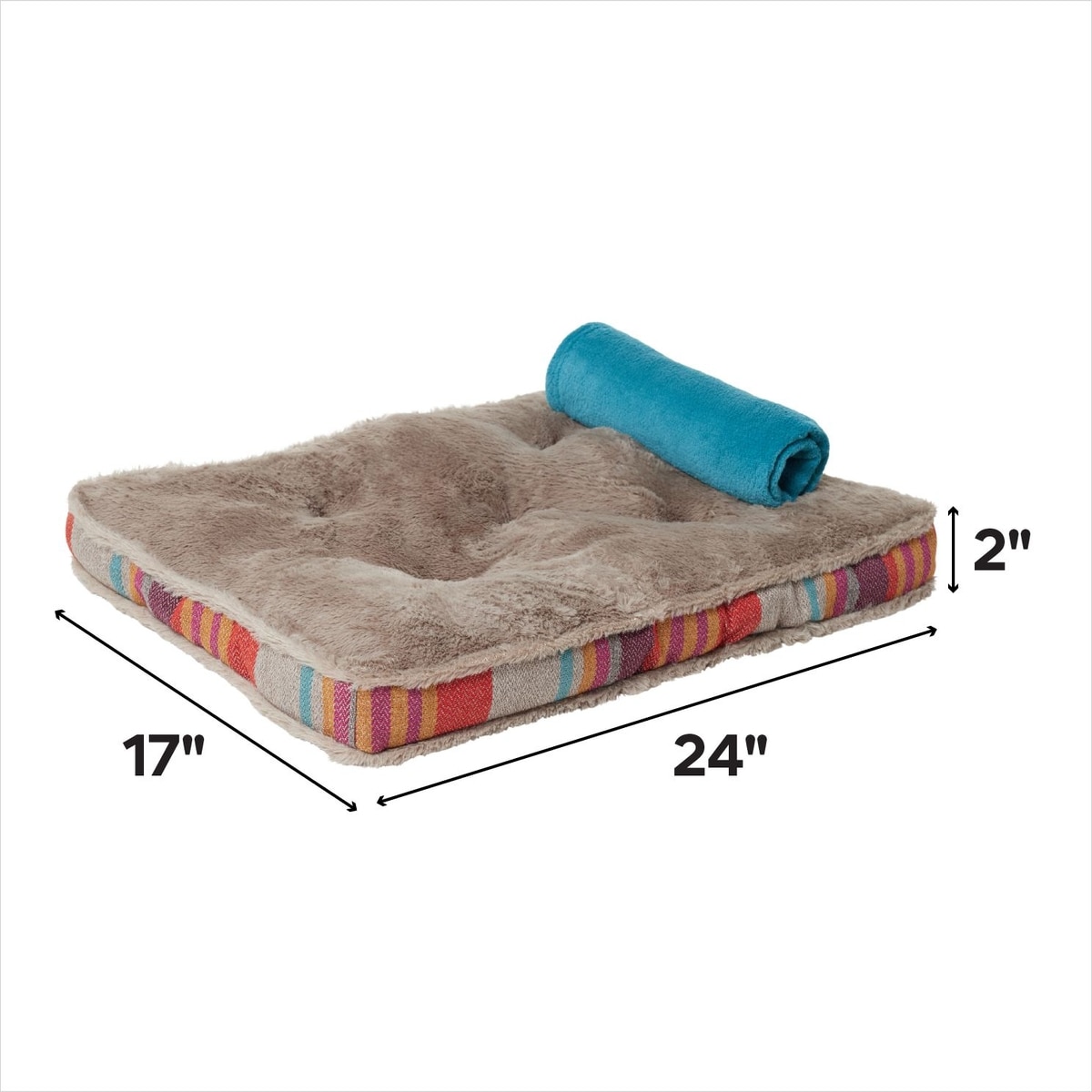 Daisy loves her little dog pillow. It keeps her off of the hardwood floors. She tries to hide things under it. I ways find them. Just a nice size and shape for our