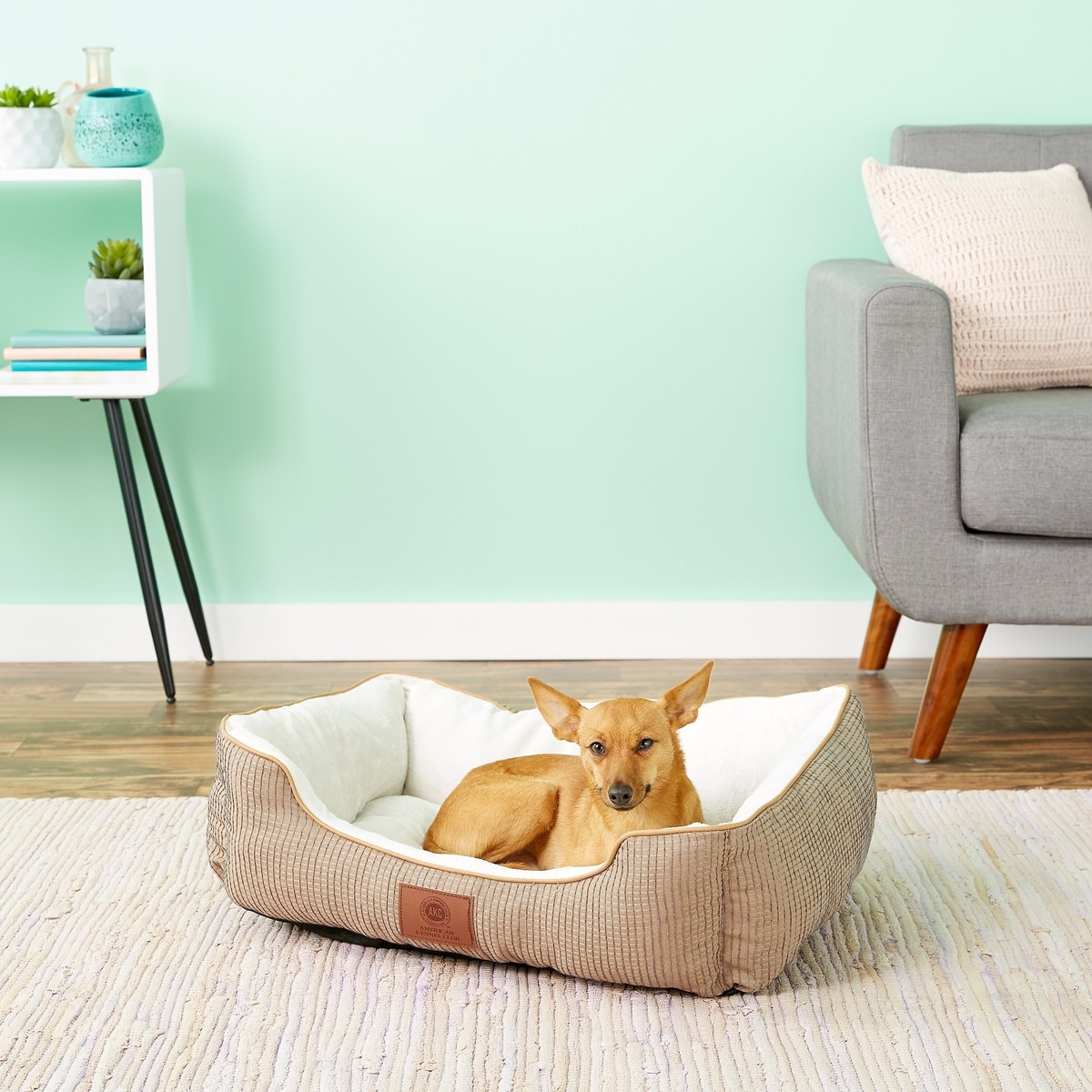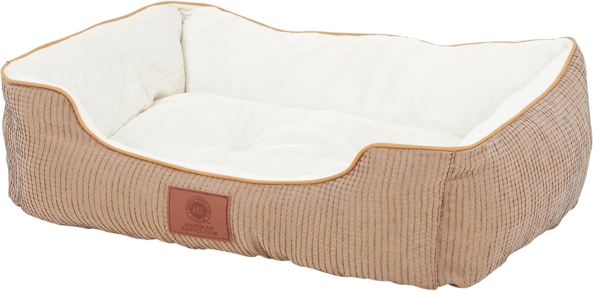 American Kennel Club AKC Box Weave Design Bolster Cat & Dog Bed, Tan