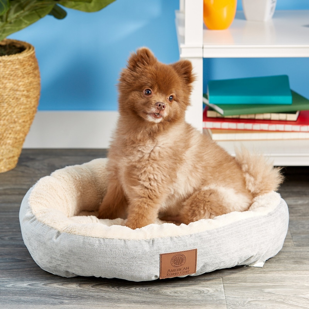 American Kennel Club AKC Casablanca Bolster Cat & Dog Bed, Light Blue