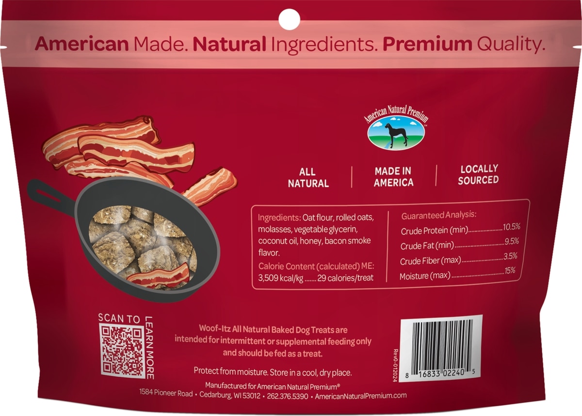 American Natural Premium Woof-Itz Sizzlin Bacon Soft & Chewy Dog Treats, 8-oz bag