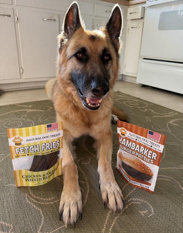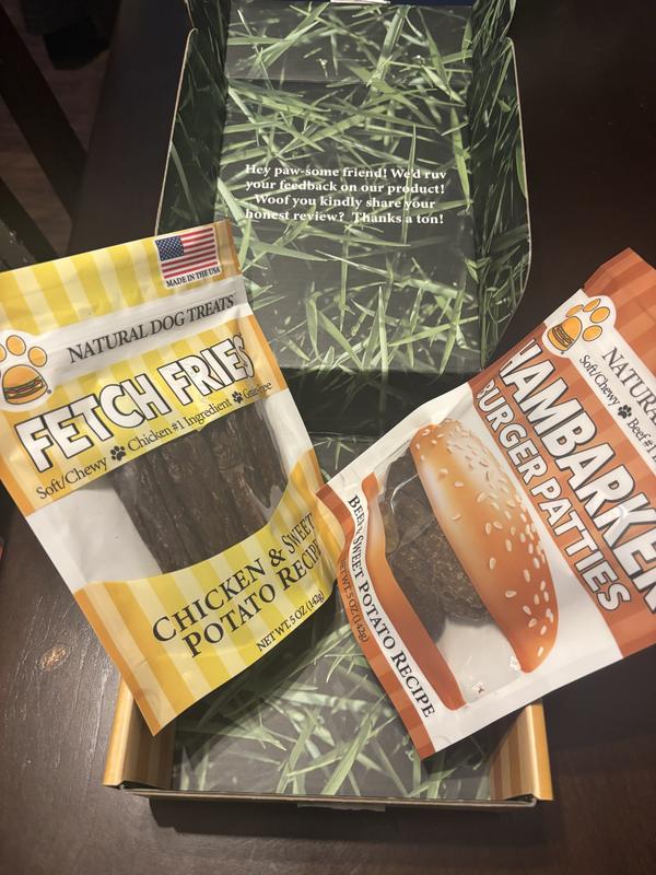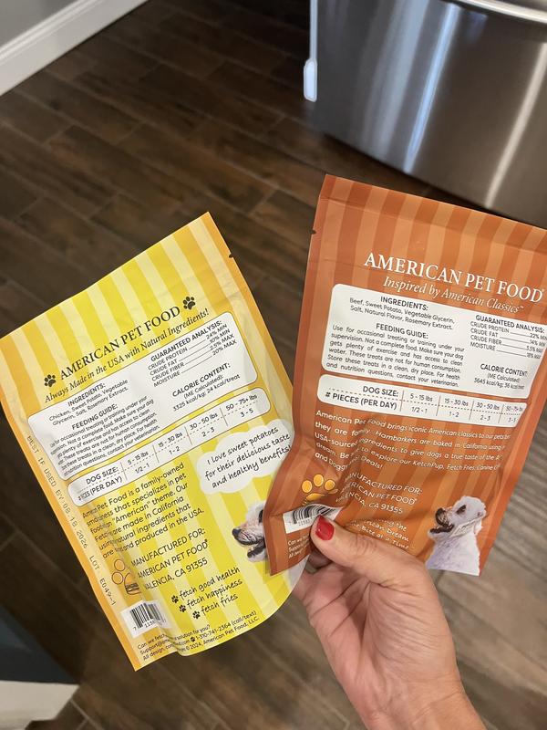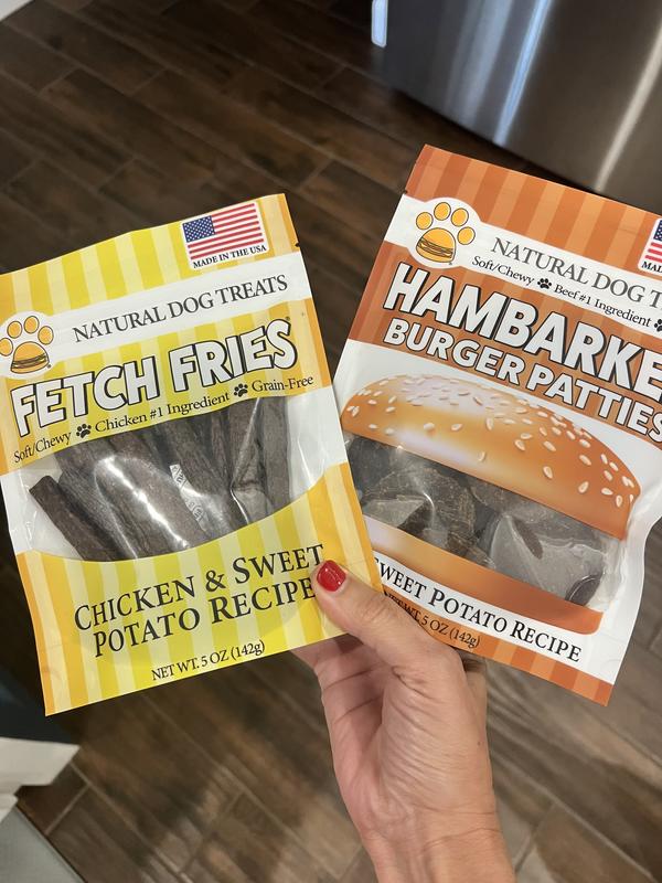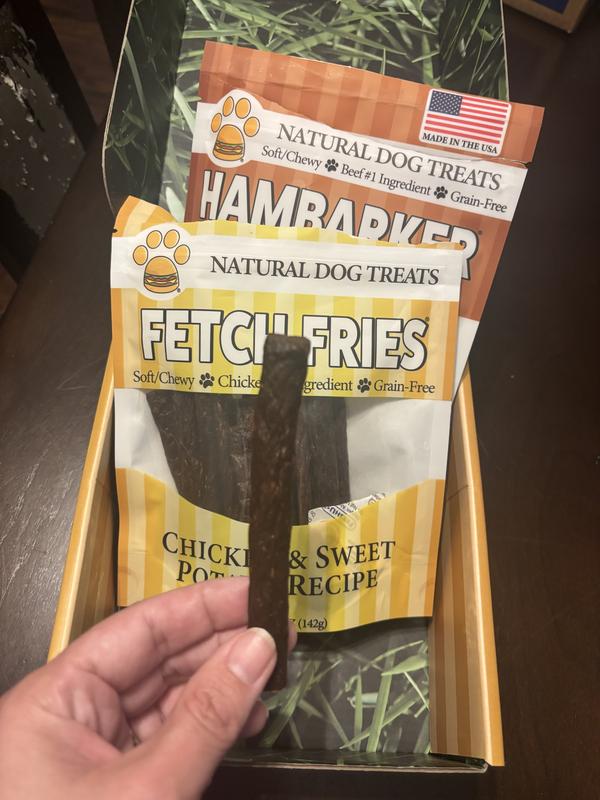 American Pet Food Fetch Fries & Hambarker Combo Beef & Sweet Potato Burger Patties & Chicken & Sweet Potato Jerky Sticks Dog Treats, 10-oz bag