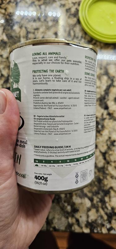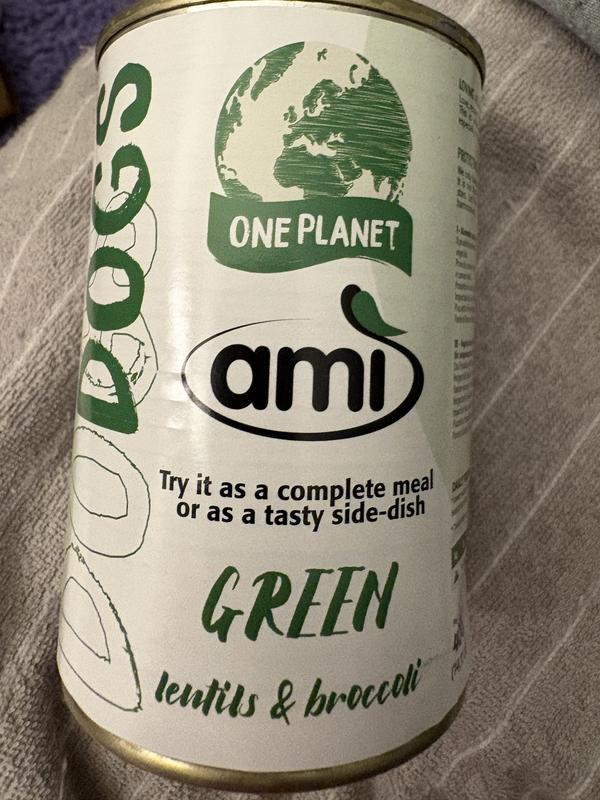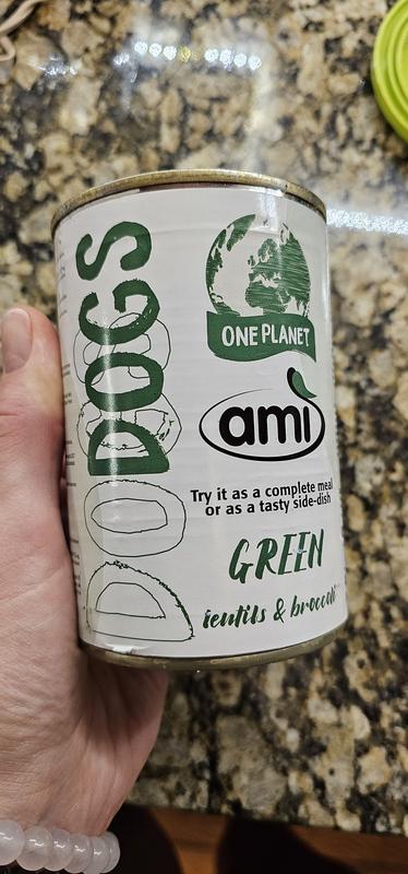 I received Ami Green Lentils & Broccoli Vegan Wet Dog Food from Chewy recently. My 8 year old dog, Gus, seems to like it. I add a few spoonfuls to his usual kibble,