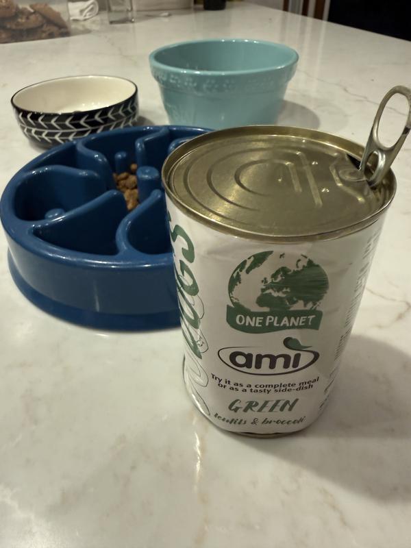 I’ve been using the Ami Green Lentils & Broccoli wet dog food as a topper, and it’s been a nice addition to my dogs’ meals. They really enjoy it, and I haven’t noticed any digestive issues at all. My dogs are already used to eating fresh veggies like carrots and broccoli, so this fits right into their routine and gives them an extra boost of vegetables. The pull‑top can is easy to open, and the food itself has a mild smell—not overwhelming like some wet foods can be. My only complaint is that it’s a bit on the pricey side, but overall it’s been a good supplement to their regular diet.