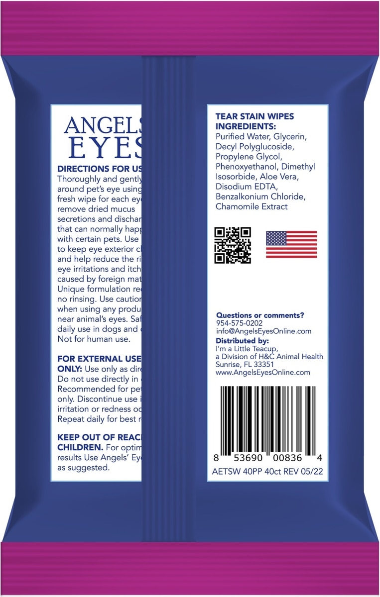 Angels' Eyes Face Eye & Paw Cleansing & Tear Stain Wipe for Dogs & Cats, 40 Count
