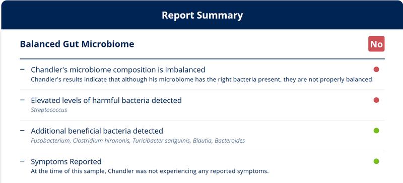 I test my dog's biome to evaluate changes in her gut bacteria. She has some health issues and this test helps me fine tune her gut health.