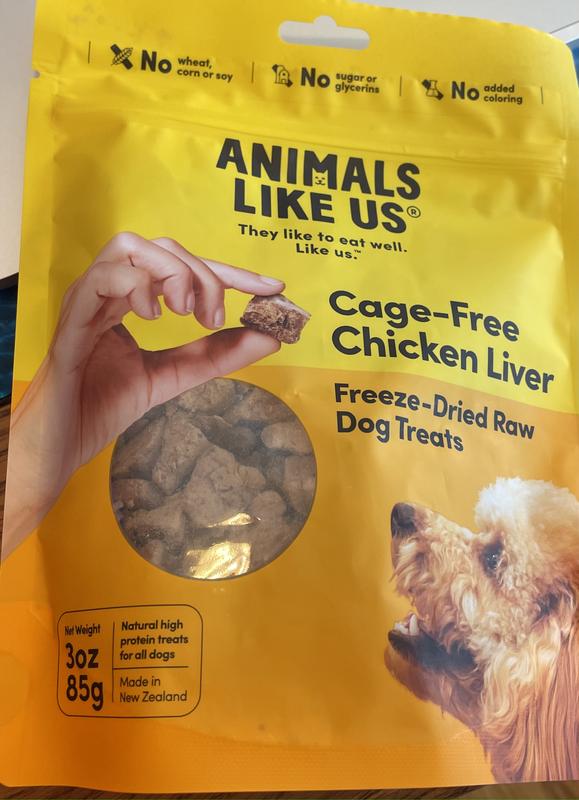 Animals Like Us Cage-Free Chicken Liver Grain-Free Freeze-Dried Raw Dog Treats, 3-oz pouch
