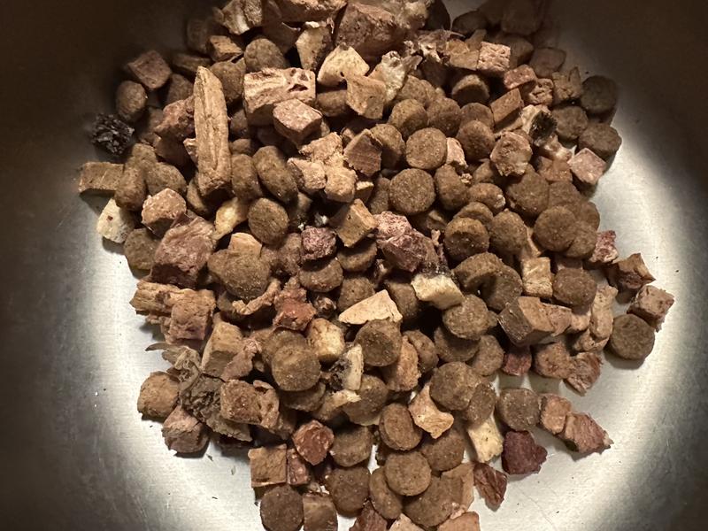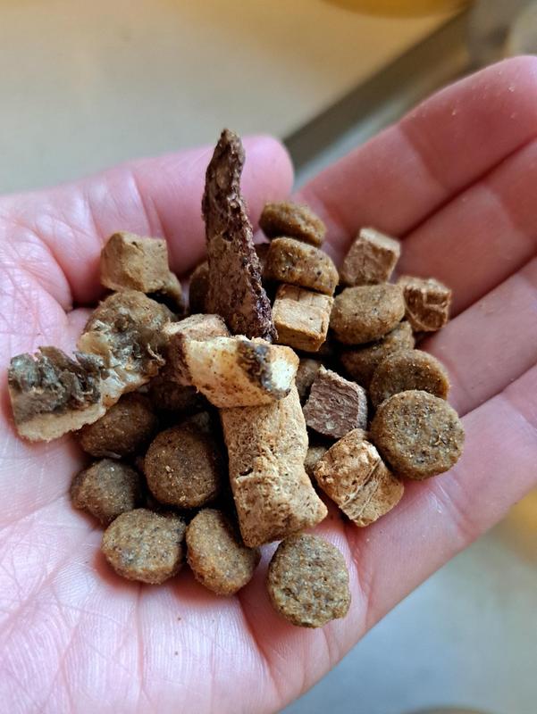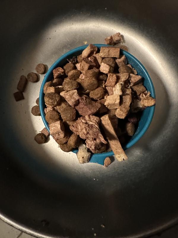 Dogs Love RawMix50 RawMix50 is 50% chunks of freeze-dried raw meat and organs combined with 50% high-protein kibble. It’s the safe and easy way to add raw. Your pup will love it.