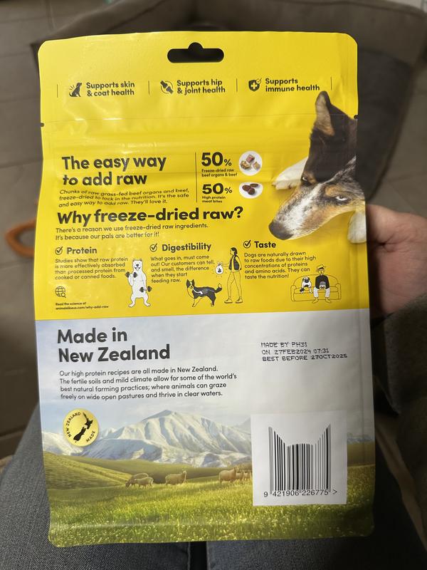 RawMix50 combines the nutrition of raw with the convenience of high-protein kibble. Made using freeze-drying technology to remove moisture and lock in nutrition and taste, this minimally processed diet is suitable for all breeds and life stages.
