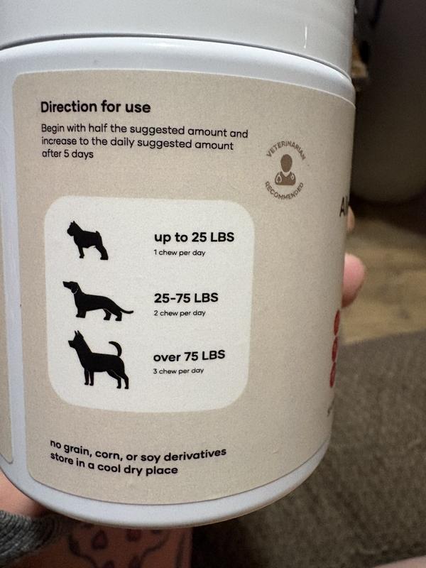 My boxer struggles with seasonal allergies and after a week of being on these I’ve noticed less itching and paw licking. I like the ingredient list and He really likes the taste of them too.