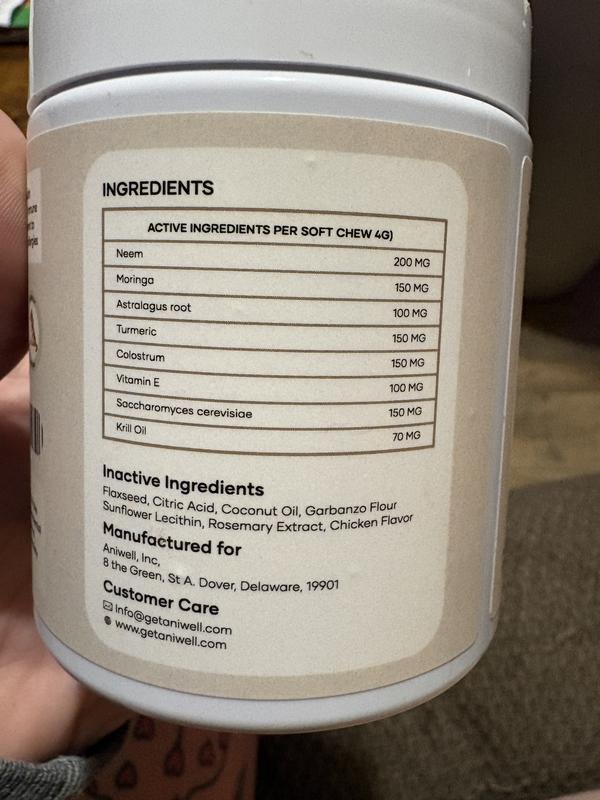 I’ve been giving my dog the Aniwell Neem, Moringa, Turmeric & Salmon Flavored Allergy Chews for a few weeks. She absolutely loves the taste — no coaxing needed!