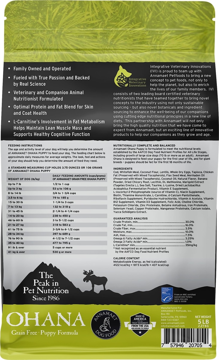 Annamaet Grain-Free Ohana Puppy Formula Dry Dog Food, 5-lb bag