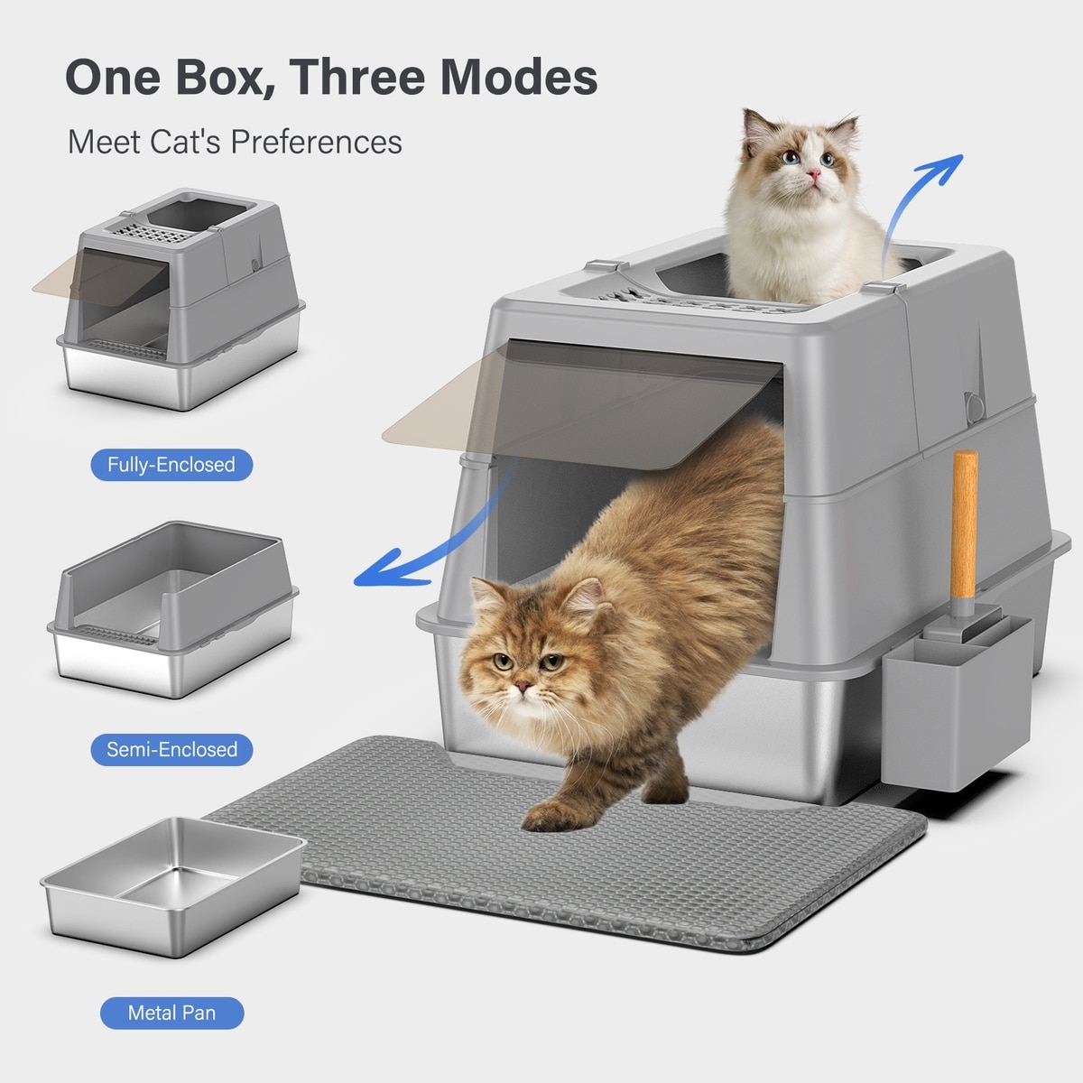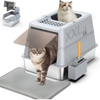 Flexible front door and top exit allow your kitty to freely choose their entry and exit points, and the mat removes clumps of litter from paws to keep your floors clean.