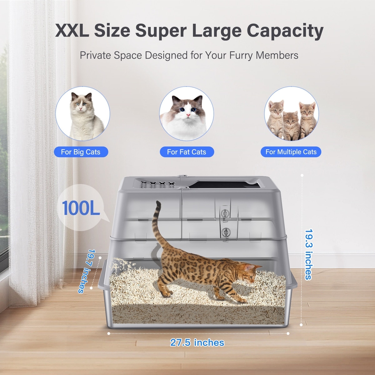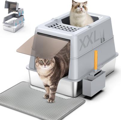 Crafted from premium stainless steel, the box features a leak-proof overlapping design that effectively prevents urinary leakage and litter spills.