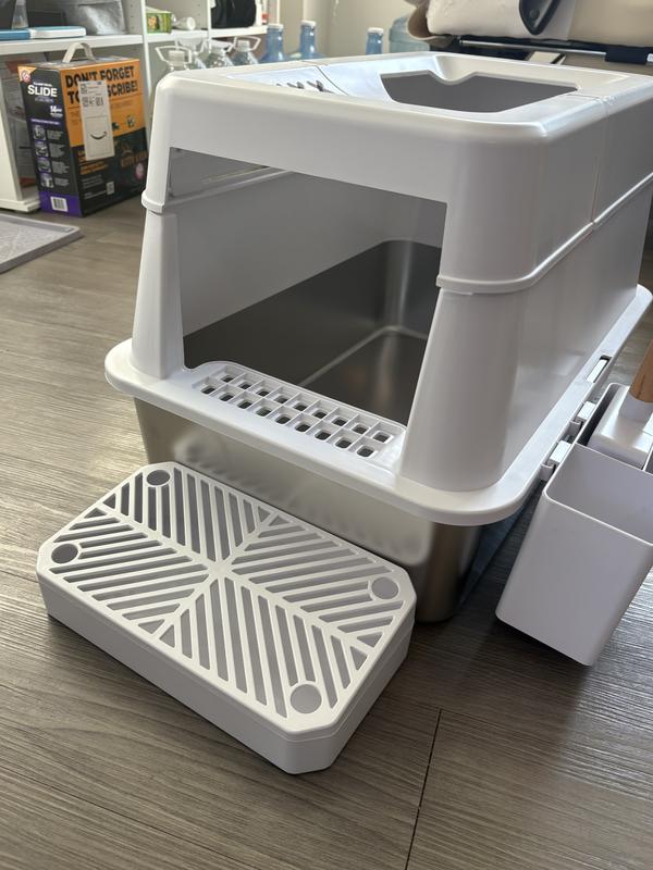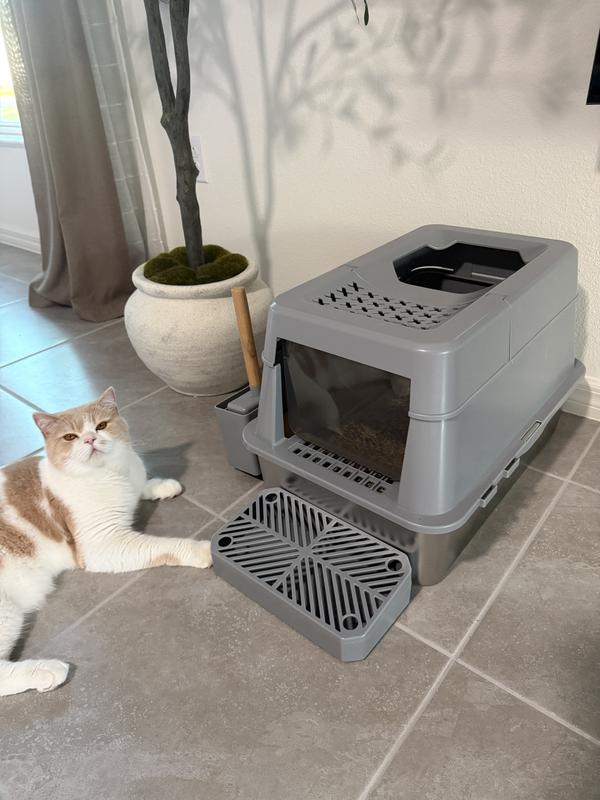 Aphyxen Stainless Steel Enclosed Cat Litter Box, Grey