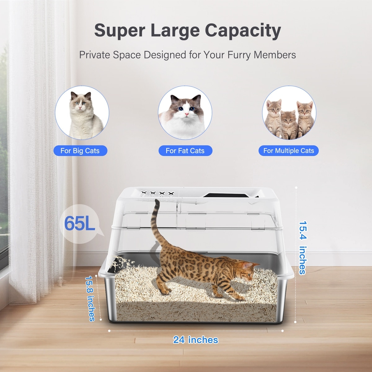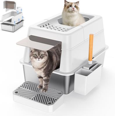 Aphyxen Stainless Steel Enclosed Cat Litter Box, White