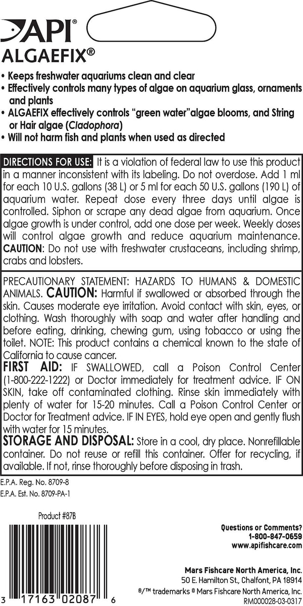 API Algaefix Algae Control Aquarium Solution, 1.25-fl oz bottle