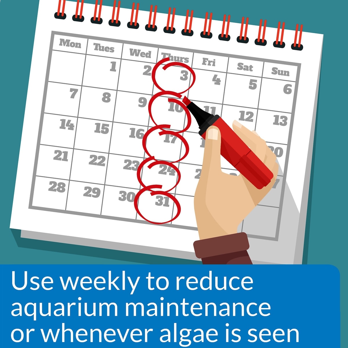 Use weekly to control algae growth and keep aquarium glass, ornaments and plants clean.