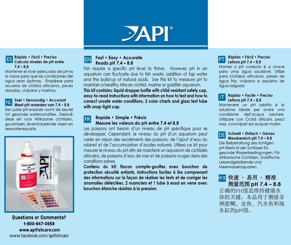API High Range pH Fresh & Salt Water Aquarium Test Kit, 160 count