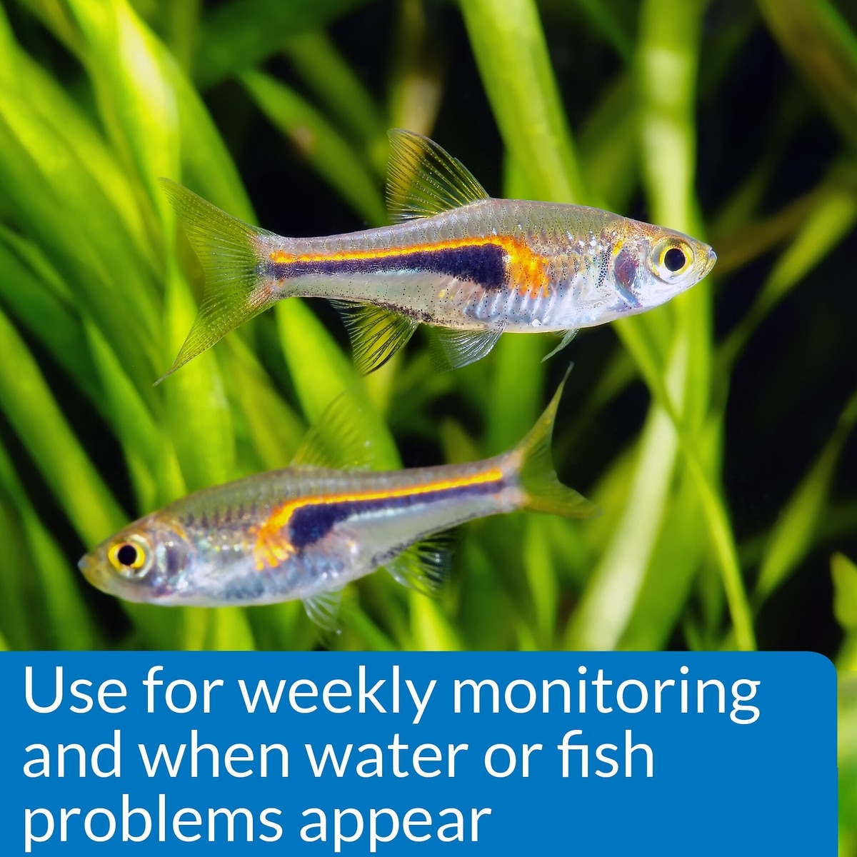 Simply dip an API test strip into your aquarium, swirl it twice, and then use the color-coded chart to determine if your water is within safe parameters or if adjustments are needed. That’s it! API test strips are available in a 5-in-1 version, which includes testing for pH, nitrite, nitrate, carbonate, and general hardness. Ammonia and pH test strips are also available so you can mix and match according to your needs.