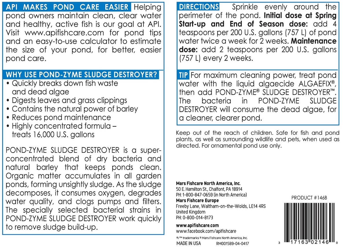 - API Pond Ecofix Sludge Destroyer Pond Water Clarifier & Sludge Remover, 1-gal bottle$67.49 Chewy Price$107.98 List Price$64.12 Autoship PricePromo, New Customers Only: Spend $49+, Get $20 eGift Card