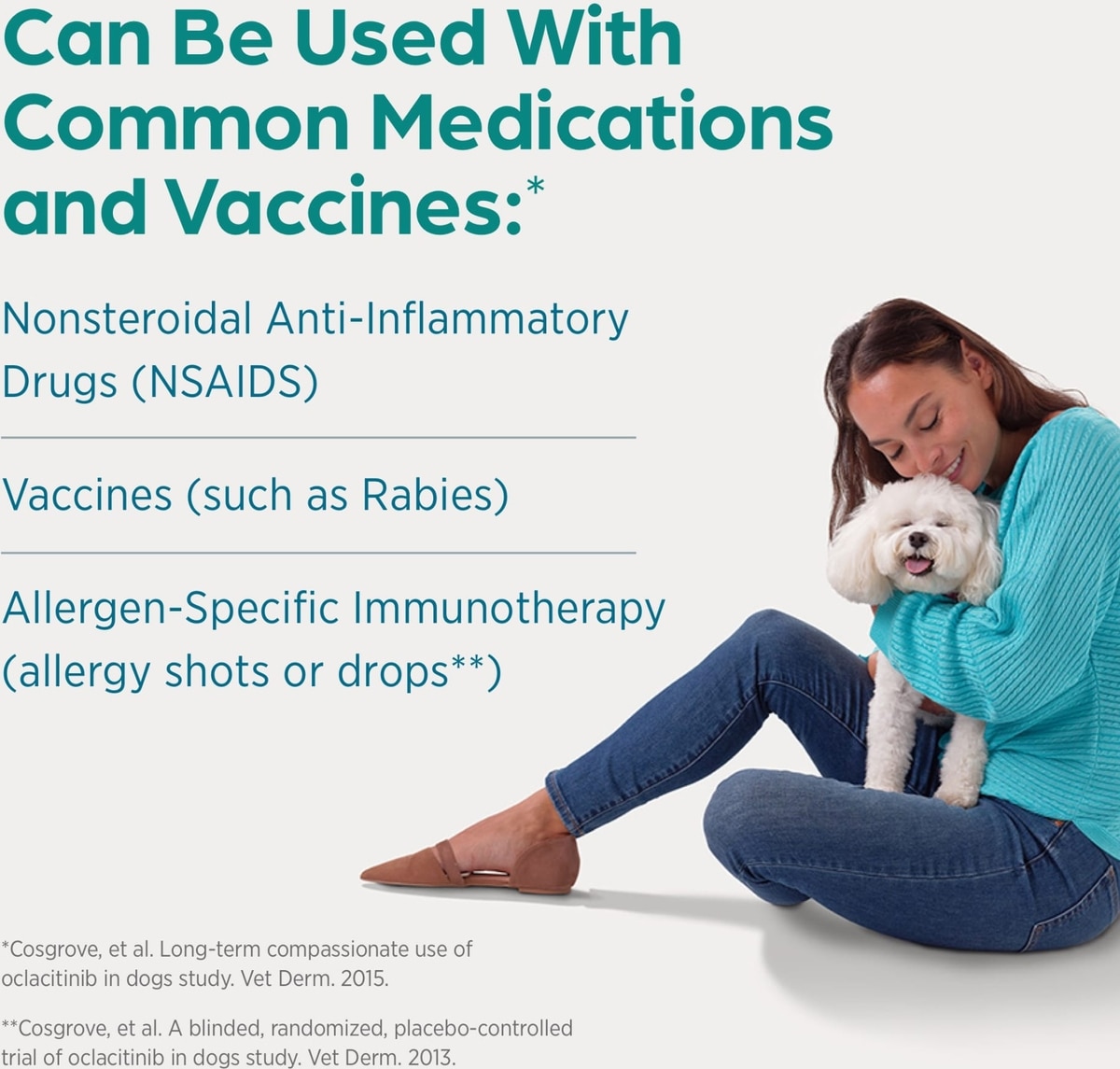 INDICATIONS: Control of pruritus (itching) associated with allergic dermatitis and control of atopic dermatitis in dogs at least 12 months of age.