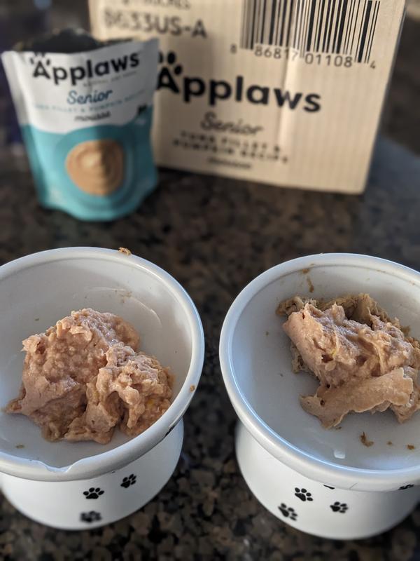 - DealApplaws Senior Tuna Fillet, Salmon, & Pumpkin Recipe Grain-Free Mousse Wet Cat Food, 2.47-oz pouch, case of 12$28.68 Chewy Price$27.25 Autoship PricePromo, Spend $100, Get $30 eGift Card with code NEWYEAR +1 deal