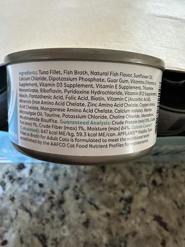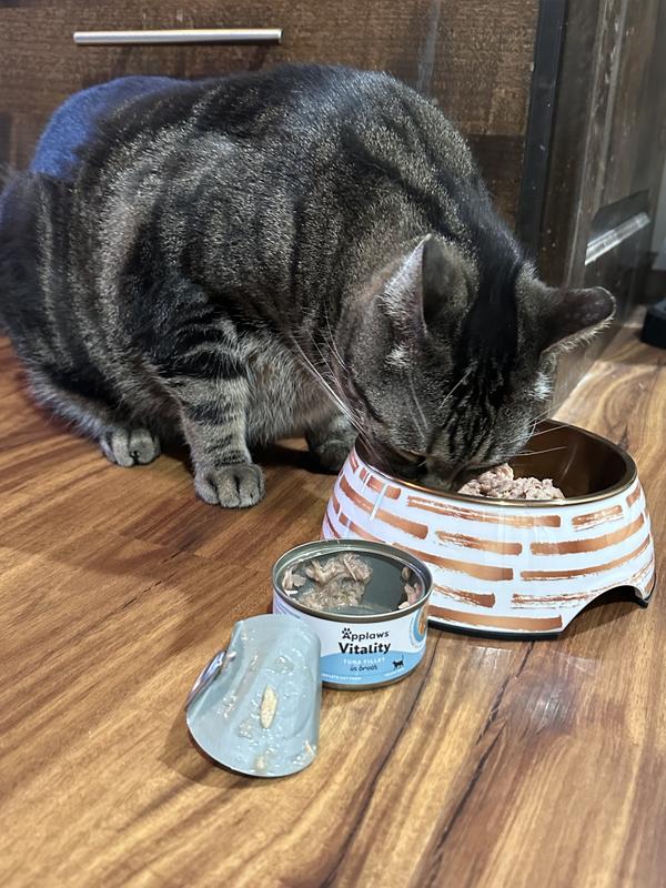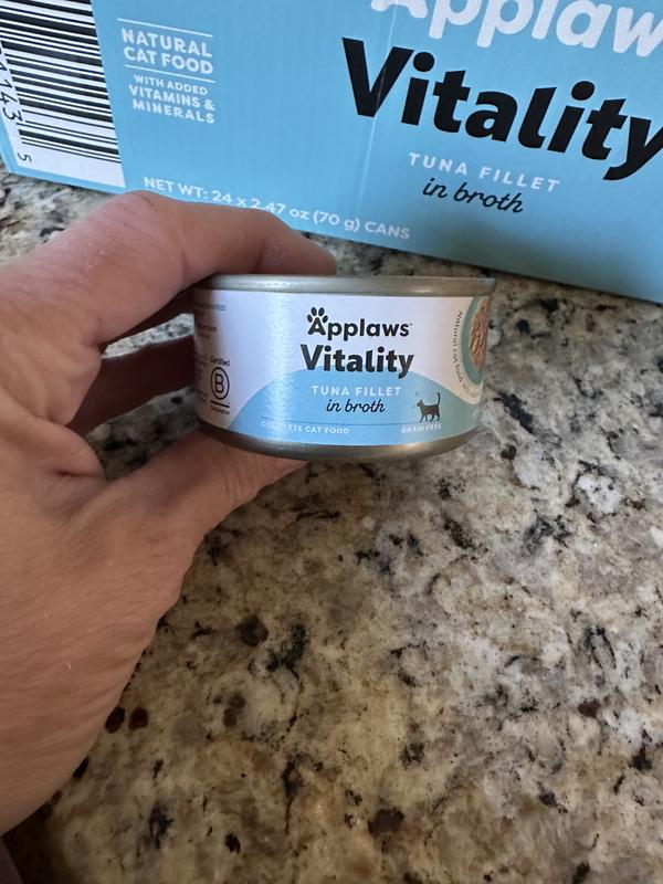 - DealApplaws Vitality Tuna Fillet & Salmon In Broth Grain-Free Wet Cat Food, 5.5-oz can, case of 24$52.99 Chewy Price$81.36 List Price$50.34 Autoship PricePromo, New Customers Only: Spend $49+, Get $20 eGift Card