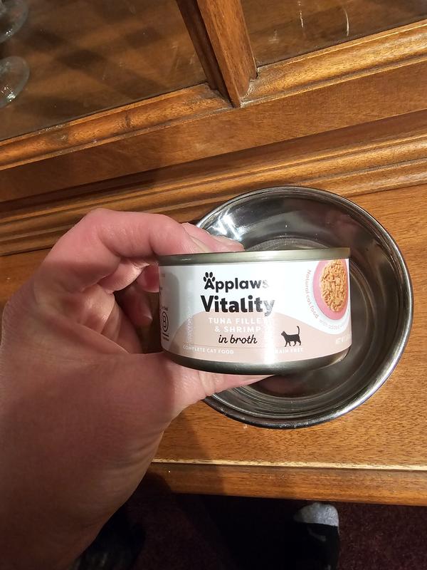 - DealApplaws Vitality Tuna Fillet & Salmon In Broth Grain-Free Wet Cat Food, 2.47-oz can, case of 24$53.13 Chewy Price$59.76 List Price$50.47 Autoship PricePromo, Spend $100, Get $30 eGift Card with code NEWYEAR +1 deal