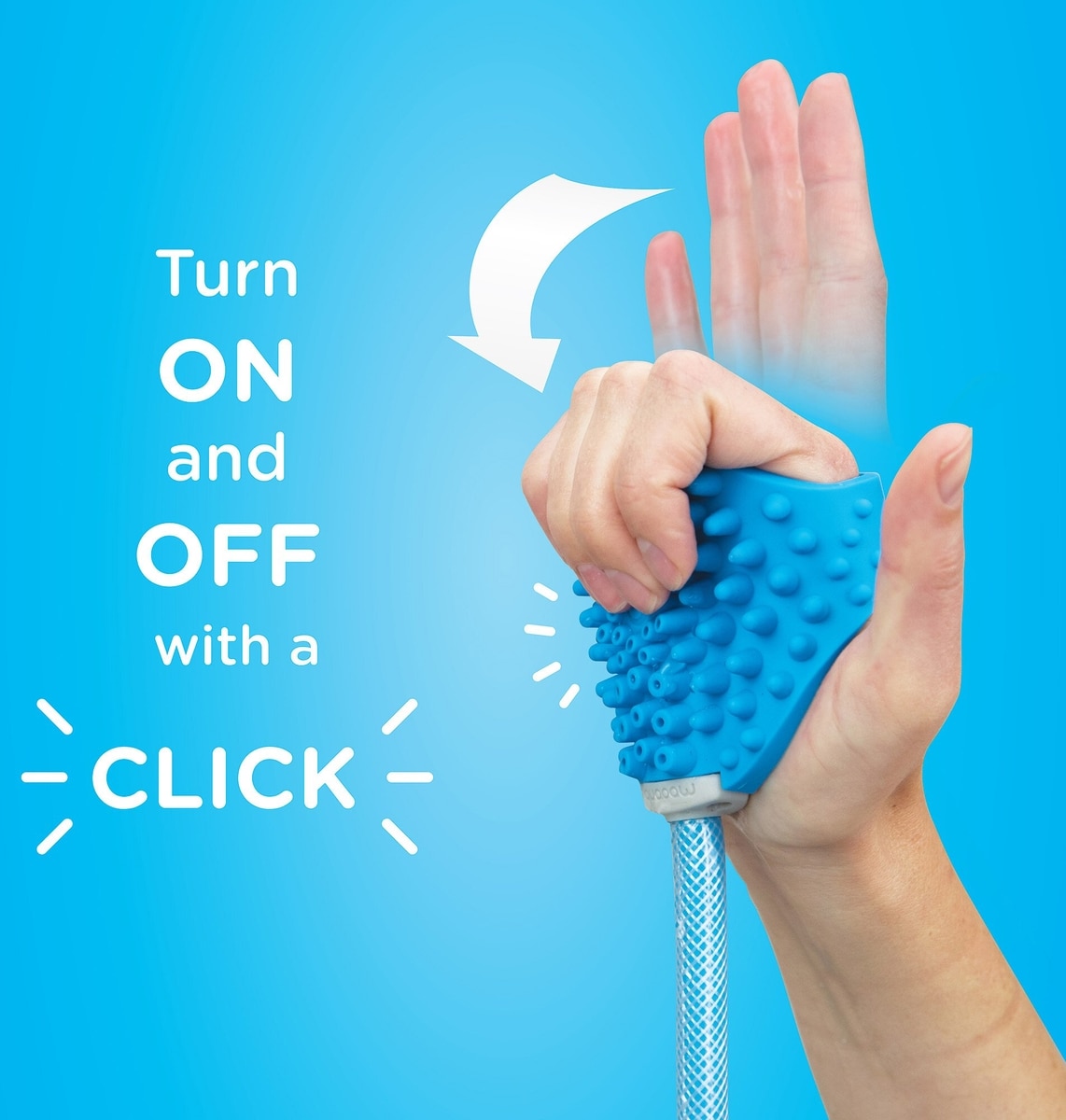 The water will shut off completely. Aquapaw shower adapter has a switch that allows you to shut off the flow to the showerhead.