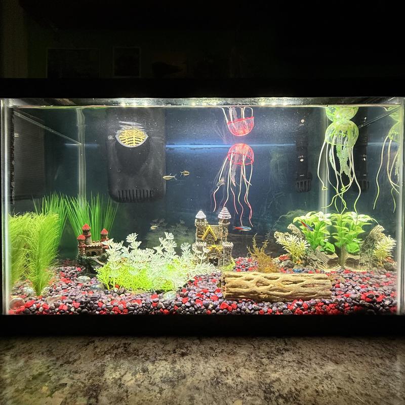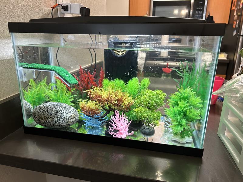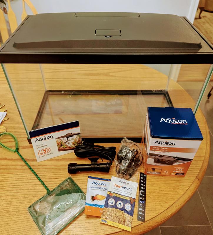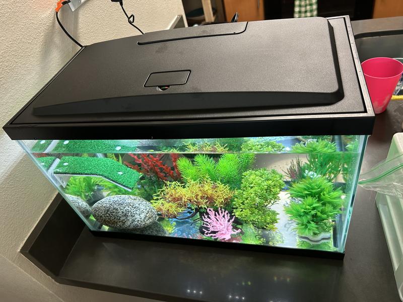 Where was this tank and kit years ago?? This is the perfect aquarium kit and has everything you need to create the perfect home for your fish. I personally only keep a betta these days, but in the past I have had guppies, tetras, danios, mollies, and a betta sorority tank. This kit includes a sturdy glass 10 gallon aquarium with a fantastic lid (see my photos). I have had countless aquariums over the years where there were gaps in the lid, especially near the filter, and I lost a betta once due to a gap in a lid that let her jump out. This lid is perfect, and has a little feeding hole instead of having to lift up the entire lid. The kit includes a little of everything to get your aquarium going: a sample of fish food, water conditioner, a heater and thermometer (crucial for tropical fish), a large net, and Aqueon’s new SmartClean filter. I’m excited to try out this filter because it helps make water changes extremely easy instead of having to use a siphon or pitcher. Be sure to still add aquarium salt (if you choose), aquarium starter for nutrients, and let the tank cycle before adding fish, but other than that, this has everything you need, just add gravel, decor, and your fish! I seriously wish this kit was available years ago when I first started keeping pet fish since it is absolutely perfect. I’ll update the photos once I switch Blueberry (my male betta) over to this tank. Don’t forget: bettas do best in a minimum of 5 gallons, so this 10 gallon is great for them too!