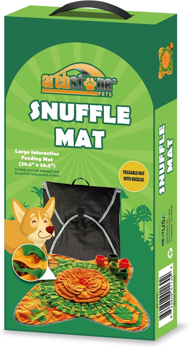 Archstone Pets Snuffle Interactive Dog & Cat Feeding Mat, 29 x 29-in, Brown, Green, Yellow