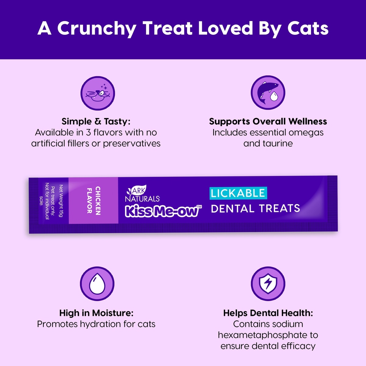 - DealArk Naturals Kiss Me-Ow Tuna Lickable Dental Cat Treats, 0.5-oz tube, case of 4$5.99 Chewy Price$6.49 List Price$5.69 Autoship PricePromo, Spend $100, Get $30 eGift Card with code NEWYEAR +1 deal
