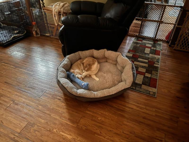 I recommend this if you have dogs or cats that don't "create nests". My 15lb beagle tries to nest in the bed by digging, and it doesn't fluff well. This is not the reason for the 3 stars — the walls of the bed collapse easily and are not sturdy to lean against. My 10lb tom cat pushes against it and falls out of the bed.