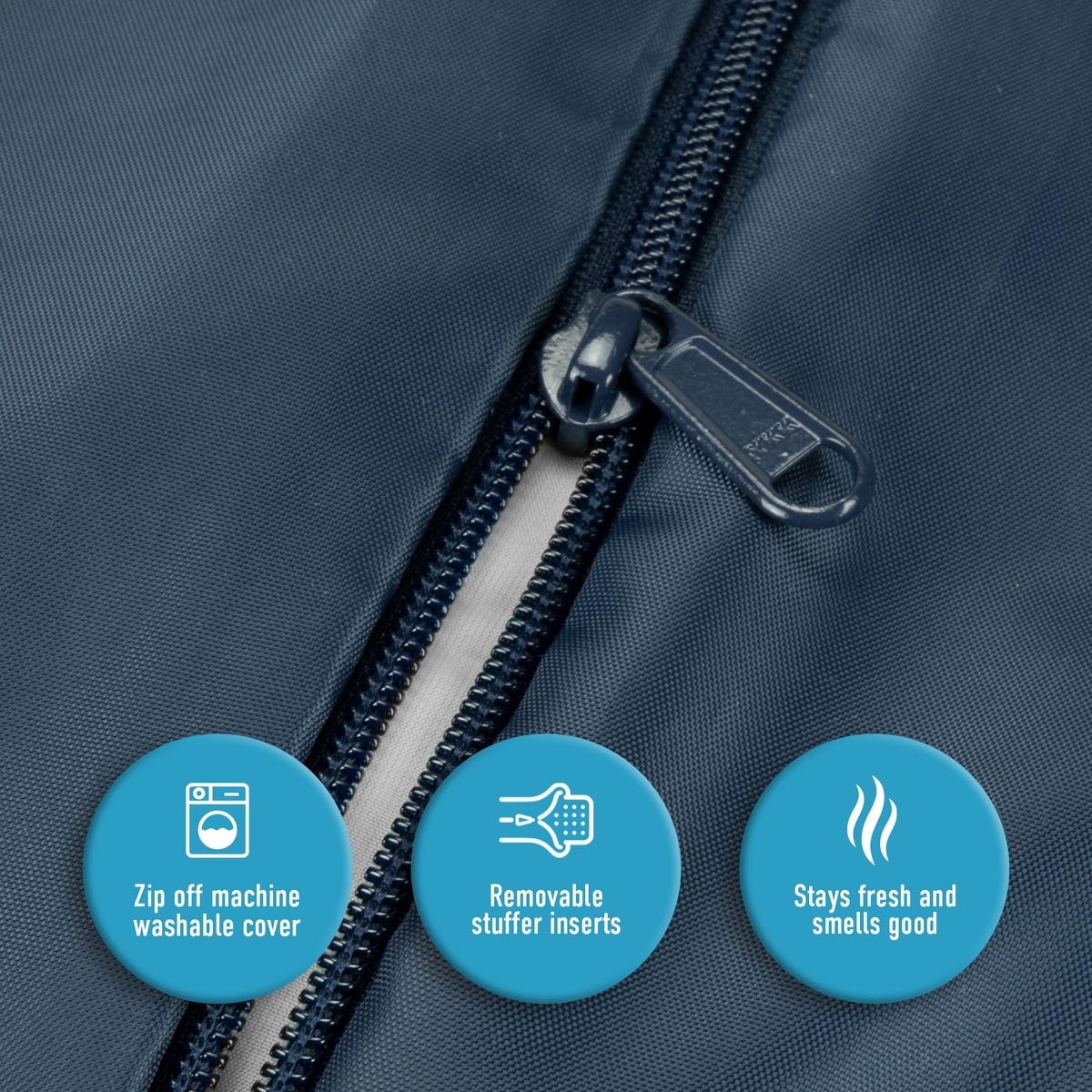 - The filling is made from repurposed plastic bottles to reduce waste and landfill impact.