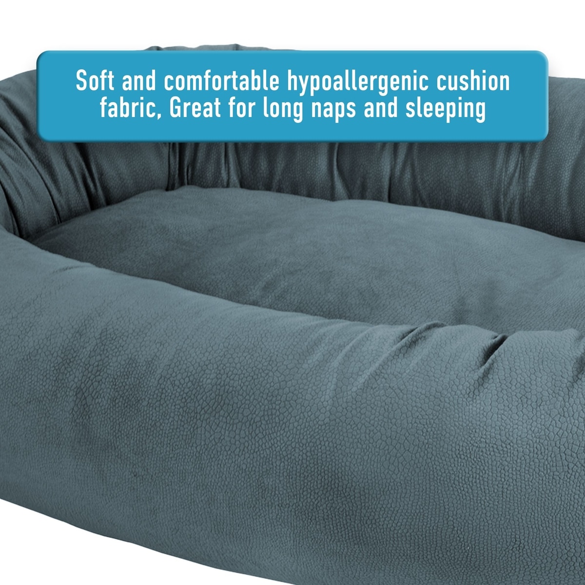 Arlee Home & Pet Orbit Orthopedic Durable Eco-Friendly Memory Foam Bolster Dog & Cat Bed, Blue, 40 x 29 x 10-in