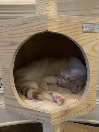 This is our third cat tree of this model. Several of our cats family use it. One sleeps in the cozy enclosed space and several perch on different levels. My prefer