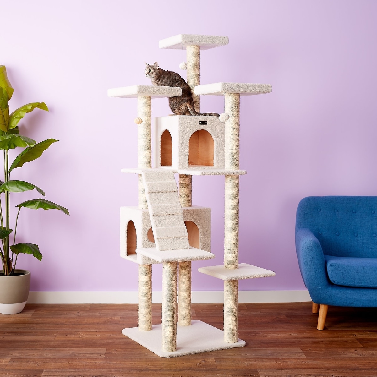 Armarkat 77-in Faux Fleece Cat Tree & Condo, Ivory