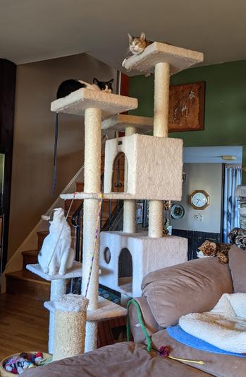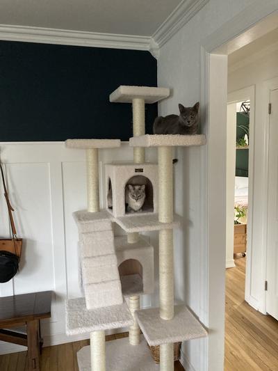 Because cats have a need to climb, a quality cat tree provides healthy exercise. If you have multiple cats, the tree becomes a place for them to play.