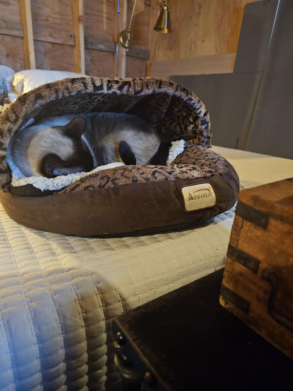 Armarkat Anti Slip Bottom Cuddle Cave Cat Bed, Mocha & Leopard