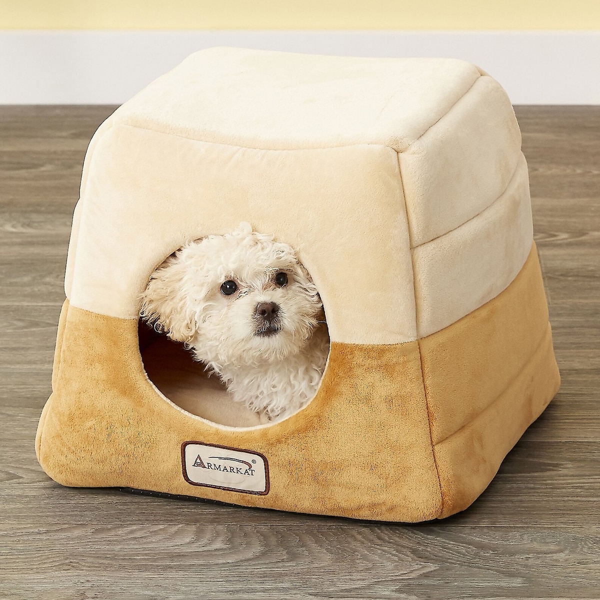 Armarkat Cave Shape Covered Cat & Dog Bed, Brown/Beige