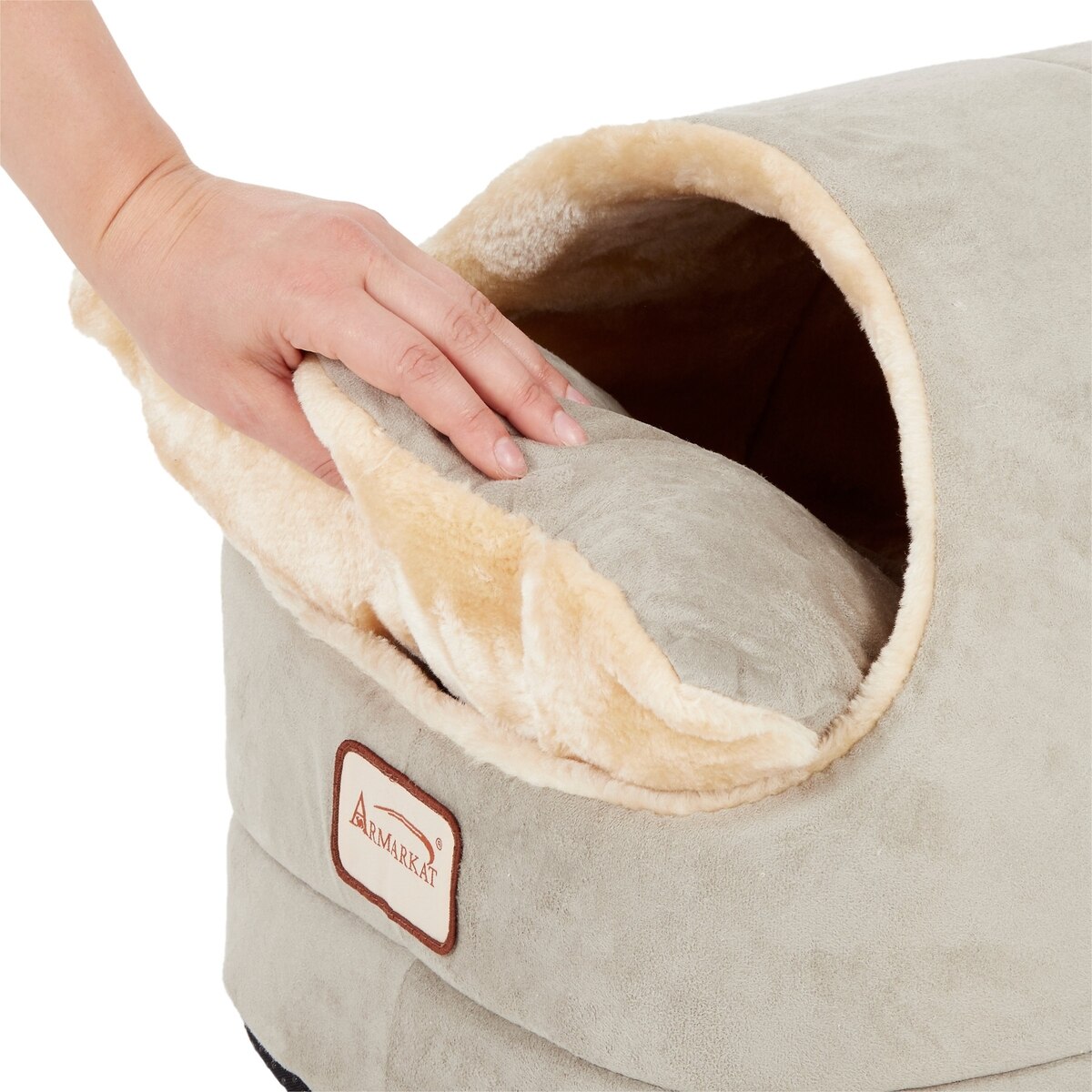 Armarkat Cave Shape Covered Cat & Dog Bed, Sage Green/Beige