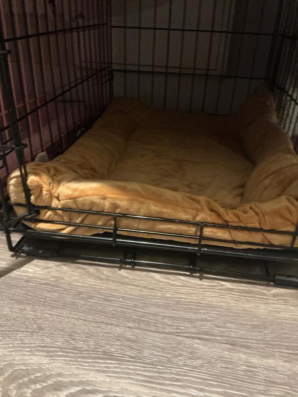 Gus has his choice of crates and usually chooses the crate with this bed.
