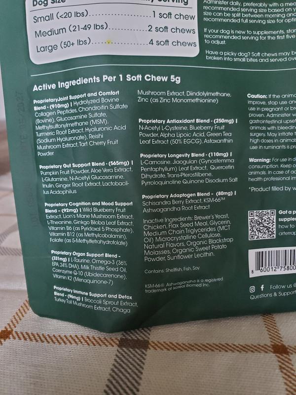 Arterra Longevity Beef Flavored Adult Soft Chew Multivitamin Supplement for Dogs, 30 count