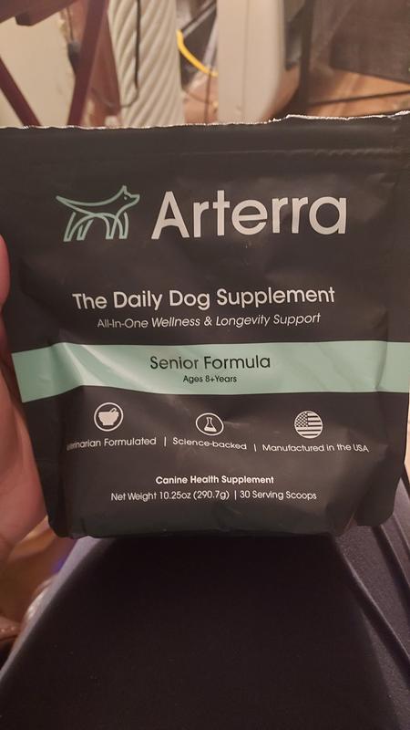 I’ve tried countless supplements for my dog, but Arterra is hands-down the best. Literally tried EVERYTHING. My 12 year-old Lab, Entropy, had dull fur, stiff joints,