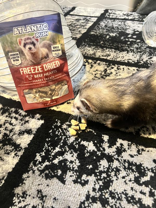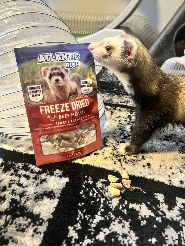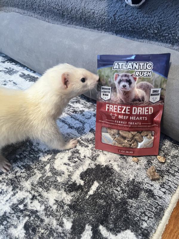 Such a clean treat. Only a single ingredient which is the heart. Nothing added which is importsnt but specifically when it comes to ferrets since they are strict carnivores and should only technically eat meat. I’d highly recommend this to everyone