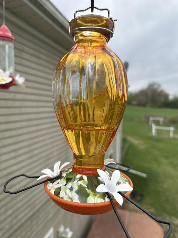 Beautiful oriole feeder but unfortunately if you wash it like it says, the orange color on the outside of the glass peels right off! I’m going to keep it anyway,since